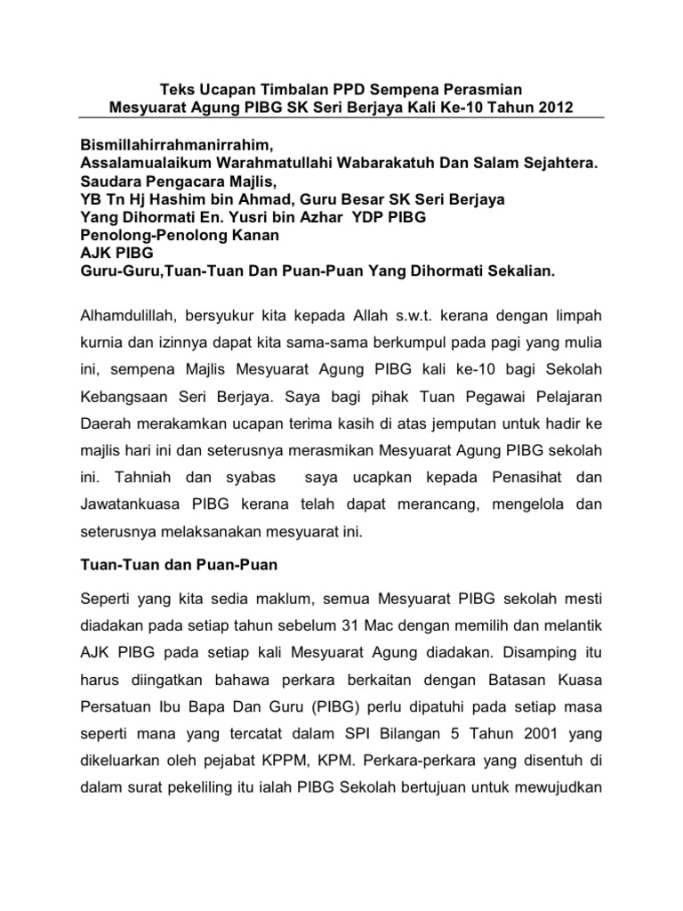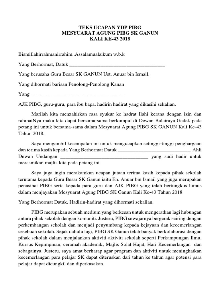 Harap dilain kali akan mendapat. Assalamualaikum warahmatullahi wabarakatuh, salam sejahtera, salam negaraku malaysia. Teks ucapan guru besar mesy agong pibg sk aminuddin baki 2020 bismillahirrahmanirrahim. Murid dapat menjaga buku teks. Salam all, semalam ade mesyuarat agong pibg.